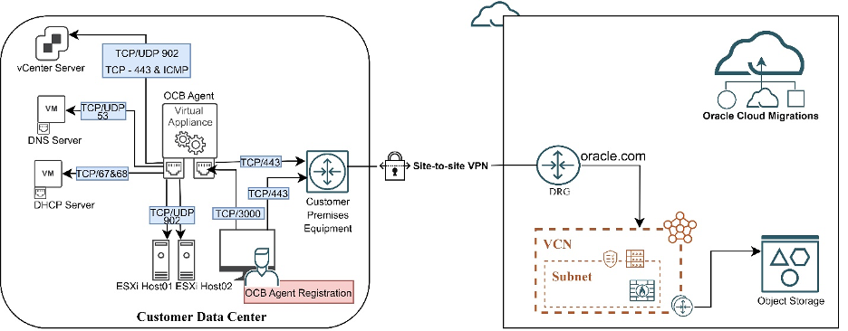 This reference architecture describes connectivity from OCB agent to vCenter and Oracle Cloud